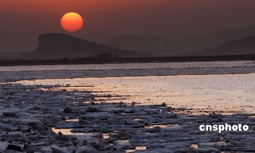 2月27日傍晚,在遼寧大連北部海域夏家河子,晚霞里海面漂浮著大片冰凌。場(chǎng)面十分壯觀。當(dāng)日,該市最低氣溫零上2度,受氣溫回升影響,該市北部海域封凍的冰層已開(kāi)始融化。中新社發(fā) 劉德斌 攝