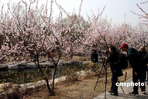 3月20日,北京植物園桃花盛開迎春爭艷,吸引了不少游客。中新社發(fā) 李遠志 攝