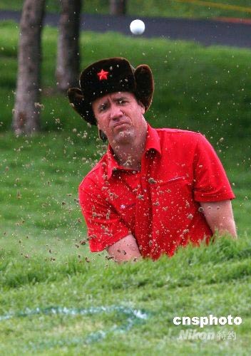 趣圖:洋球手頭頂"紅五星軍帽" 激情揮桿