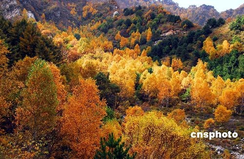 世界地質公園白石山雄居八百里太行山最北端,最高峰海拔2096米,地貌奇特,植被茂密,為中國惟一的大理巖峰林景區(qū)。每逢秋季,如詩如畫。中新社發(fā) 呂子豪 攝