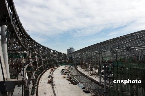 10月18日,新北京南站的鋼架結(jié)構(gòu)以基本完成,再戰(zhàn)百天以確保年底第四階段的攻堅目標(biāo)得以實現(xiàn)。中新社發(fā) 鄭雄增 攝