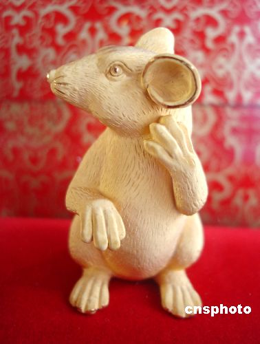 10月23日,蘇州一家金店內(nèi)一造型可愛的千足金鼠擺件,吸引了顧客的注意。據(jù)悉,2008年為農(nóng)歷鼠年,各種以鼠為題材的飾品在蘇州紛紛上市。中新社發(fā) 王建康 攝