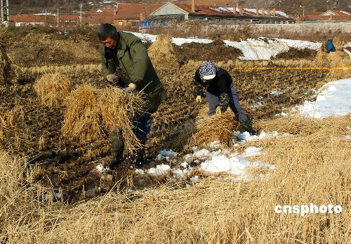 10月22日,黑龍江穆棱市河西鄉(xiāng)三興村農(nóng)民在搶出被大雪覆蓋的水稻田。近日,黑龍江省牡丹江市局部地區(qū)突遭暴雪襲擊。轄區(qū)內(nèi)的綏芬河市、穆棱市、林口縣、東寧縣等東部地區(qū),降雪量達(dá)到了大雪及暴雪的程度,部分地面積雪厚達(dá)1米以上。此次出現(xiàn)的強(qiáng)降雪天氣,給當(dāng)?shù)剞r(nóng)民的秋收工作造成較大影響。暴雪過后,牡丹江市涉農(nóng)部門積極指導(dǎo)農(nóng)民開展抗災(zāi)自救,將農(nóng)業(yè)生產(chǎn)的損失降到最低限度。中新社發(fā) 莊文斌 攝