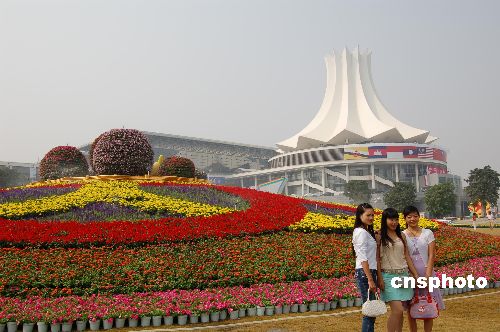 十月二十六日,廣西南寧國際會展中心花團錦簇,迎接即將于十月二十八日至三十一日舉行的第四屆中國—東盟博覽會和中國—東盟商務(wù)與投資峰會以及二〇〇七年南寧國際民歌藝術(shù)節(jié)。中新社發(fā) 劉萬強 攝