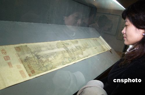 11月6日晚,中國嘉德2007秋季拍賣會的國寶級拍品明代仇英《赤壁圖》,最終以7952萬元人民幣(含傭金)的天價成交,創(chuàng)下中國繪畫作品(包括所有中國書畫和油畫作品)拍賣的世界紀錄。據悉,該作品由中國內地買家競得。此幅作品受到藏家的極大關注,拍賣現(xiàn)場氣氛非常熱烈,拍賣師報出4000萬元人民幣的起價后,隨即就有買家舉牌應價。此后,現(xiàn)場買家與委托席叫價此起彼伏,競價不斷飆升,爭奪趨于白熱化,最終以7100萬元人民幣的價格落槌。中新社發(fā) 張煒 攝