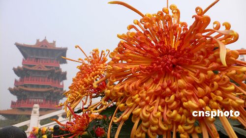 11月14日,河南開封市清明上河園里盛開的菊花。眼下,進入寒冷冬季,古城開封公園景點里的多種菊花依然鮮花盛開、耐寒傲霜,給冬日的人們帶來一股暖意。中新社發(fā) 凱楓 攝