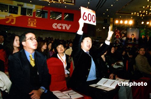 有“中國經(jīng)濟(jì)的晴雨表”、“市場變化風(fēng)向標(biāo)”之稱的中央電視臺廣告招標(biāo)會于11月18日在北京如期舉行,在這個招標(biāo)會上,中國企業(yè)已經(jīng)提前打響“奧運(yùn)大戰(zhàn)”,全部北京奧運(yùn)合作伙伴到場角逐,爭奪企業(yè)中意的中央電視臺廣告發(fā)布時段。當(dāng)日,中央電視臺2008年廣告賣出新高,中標(biāo)總額超過80億元。2008年是中國改革開放三十周年,也是北京奧運(yùn)之年,在國民經(jīng)濟(jì)保持“又好又快”發(fā)展的利好形勢下,國內(nèi)外企業(yè)參與本屆廣告招標(biāo)的熱情更高,信心更足。中新社發(fā) 楊可佳 攝