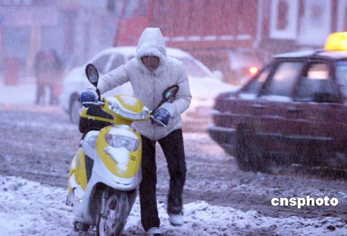 11月19日,隨著一股冷空氣的到來,丹東迎來中到大雪天氣。降雪伴隨著大幅降溫,迅速形成了大面積的積雪,給交通帶來不利影響。據了解,丹東是遼寧此次降雪量最大的地區(qū)。中新社發(fā) 陳浩浩 攝