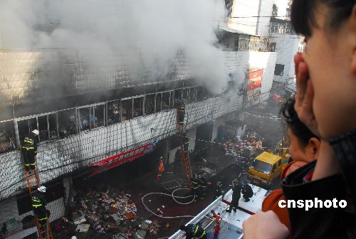 11月20日上午10時許,安徽蚌埠市區(qū)最大的小商品批發(fā)市場——太平街批發(fā)市場2號營業(yè)大廳發(fā)生火災,一層大廳2000平方米的近百攤位全部陷入火海中。一個多小時后,火勢又蔓延到二樓倉儲區(qū)。截至下午4時,余火仍在撲救中。目前沒有人員傷亡報告,經(jīng)營戶貨品財物損失很大。 中新社發(fā) 安徽張建平 攝