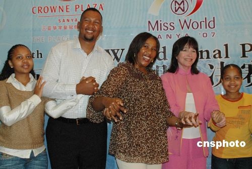 十一月二十九日,海南三亞,南非前總統(tǒng)曼德拉的長(zhǎng)女(中)長(zhǎng)孫(左二)現(xiàn)身海南三亞,在世界小姐機(jī)構(gòu)舉行的新聞發(fā)布會(huì)(右二為世界小姐機(jī)構(gòu)主席莫莉夫人)上呼吁更多的人關(guān)注艾滋病在全球的蔓延、關(guān)愛(ài)艾滋病患者。他們此行還帶來(lái)了家鄉(xiāng)的兒童合唱團(tuán),將于十二月一日晚舉行的第五十七屆世界小姐總決賽晚會(huì)上亮相。中新社發(fā) 尹海明 攝