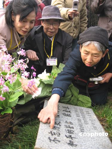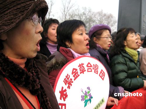 十二月十四日上午,日本友人在南京紫金草花園紀(jì)念碑前參加揭牌儀式。當(dāng)日,紫金草合唱團(tuán)的一百五十一名友好人士,在侵華日軍南京大屠殺遇難同胞紀(jì)念館新館唱起和平歌曲,并將他們親手制作的紫金草紙花贈(zèng)給新館。位于新館和平公園內(nèi)的紫金草花園由此正式揭牌。中新社發(fā) 朱曉穎