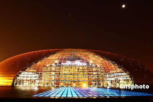 12月15日,明月與明亮的國家大劇院交相輝映。中新社發(fā) 鄭雄增 攝