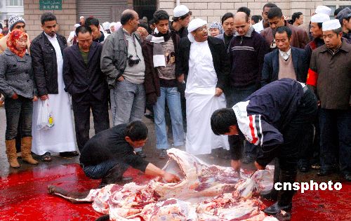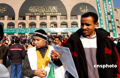 12月19日上午,在浙江義烏經(jīng)商的阿拉伯國(guó)家和國(guó)內(nèi)新疆、寧夏等地的7000余名穆斯林商人,聚集在市區(qū)江濱西路清真寺內(nèi)參加會(huì)禮,歡度穆斯林的傳統(tǒng)節(jié)日——古爾邦節(jié)。近年來(lái),巴基斯坦、阿聯(lián)酋、埃及、也門(mén)、沙特、科威特、伊朗、阿富汗、約旦、毛里塔尼亞等40個(gè)國(guó)家的5000多名穆斯林商人到義烏市場(chǎng)常駐采購(gòu)。為尊重國(guó)外商人的宗教信仰,該市專(zhuān)門(mén)建造了一座能容納4000多人的伊斯蘭教活動(dòng)場(chǎng)所——清真大寺。中新社發(fā) 張建成 攝