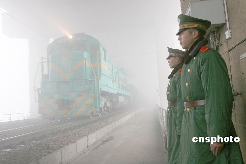 12月20日,武警守橋官兵在南京長江大橋橋面巡邏。連日來,南京遭遇50年來連續(xù)性大霧襲擊,為1951年以來大霧過程持續(xù)時間最長的一次,南京地區(qū)交通受到嚴重影響。武警江蘇總隊南京支隊守橋部隊加大巡邏力度,確保交通暢通和過橋行人、車輛安全。當日,江蘇省首次大霧紅色預警信號。中新社發(fā) 韓華 攝