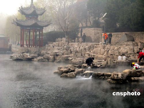 由于低溫和濕潤的空氣,12月20日,山東濟南眾泉出現(xiàn)“云霧潤蒸”景象,大片水汽從泉水和護城河水面升起。據(jù)悉,該景觀一般出現(xiàn)在冬季特殊天氣。中新社發(fā) 周青先 攝