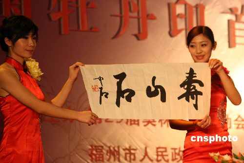 十二月二十日,北京奧組委在奧林匹克大家庭總部飯店北京飯店舉行壽山石奧運(yùn)特許商品“中國牡丹印”首發(fā)儀式。歷史悠久、雕工精美的壽山石印,承載著“中國印·舞動(dòng)的北京”與印鈕部分國色天香、雍容華貴的牡丹交相輝映。此次隆重推出的“牡丹印”是壽山石奧運(yùn)文化精品系列的首批代表作,限量2008枚。該印采用中華國石之首壽山石與國花牡丹相結(jié)合,選材為“中華印石三寶”的壽山芙蓉石脈,可稱得上是精品中的精品。中新社發(fā) 任海霞 攝