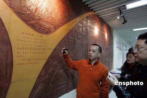 十二月二十三日,上海軌道交通4號(hào)線全線貫通進(jìn)入最后試運(yùn)營(yíng)演練,記者在南浦大橋站,看到一幅巨型浮雕,真實(shí)描繪了2003年7月,4號(hào)線在建過(guò)黃浦江段時(shí),發(fā)生重大滲水事故,后來(lái)地鐵建設(shè)者奮力搶修、原位修復(fù)的過(guò)程。據(jù)悉,該重大滲水事故,曾引起海內(nèi)外媒體廣泛關(guān)注。如今,堪稱上海軌道交通“金環(huán)”的4號(hào)線貫通在即,新浮雕讓參觀者感嘆上海人務(wù)實(shí)求真。中新社發(fā) 潘索菲 攝