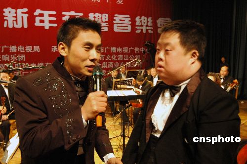 2008元旦之夜,《讓世界充滿愛》——“奇才指揮家”舟舟傾情指揮的大型新年交響音樂會(huì)在安徽巢湖舉行。委婉動(dòng)人的音樂令在場上千人領(lǐng)略了舟舟的指揮風(fēng)采,感受了交響樂的魅力,給步入新年的巢湖市民帶來了無數(shù)激情、夢(mèng)想與歡樂。中新社發(fā) 徐振華 攝