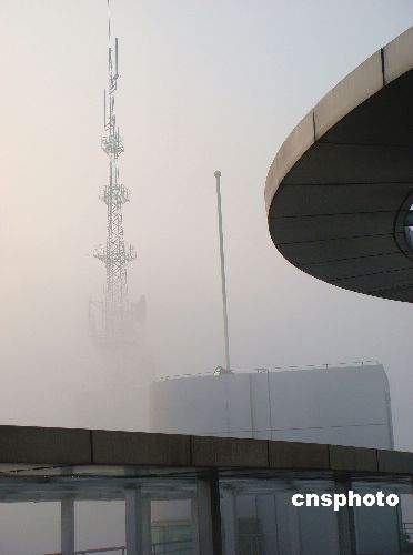 2008年1月7日,江蘇連云港遭遇大霧天氣,能見(jiàn)度不足50米,市民們謹(jǐn)慎出行!叭拧鼻跋,連云港最高溫度達(dá)到12℃,一直保持升高回暖的態(tài)勢(shì),極易形成大霧天氣。中新社發(fā) 耿玉和 攝