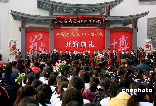 2008年1月8日,安徽徽州文化博物館落成開館。該館館藏的近10萬件(冊)歷史藏品全面、系統(tǒng)、完整地展示了徽州文化。博物館坐落在黃山市,占地157畝,建筑面積14000平方米,總投資7000萬元,是集徽州文化展示、收藏、研究、培訓(xùn)、非物質(zhì)文化遺產(chǎn)演繹、交流旅游觀光為一體的國家大型地方綜合性博物館;罩菸幕┪镳^是以徽州文化為基本內(nèi)容、徽州地理山水為背景、徽派建筑風(fēng)格為基調(diào)的一組多功能徽派風(fēng)景園林建筑,由陳列區(qū)、收藏區(qū)、文化產(chǎn)業(yè)區(qū)等組成。中新社發(fā) 方也廣德 攝