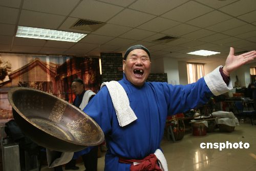 2008年1月8日,來(lái)自崇文區(qū)文化館老北京民間藝術(shù)團(tuán)的部分成員正在緊鑼密鼓地為將要在鼠年龍?zhí)稄R會(huì)上表演的老北京叫賣(mài)情景劇排練。隨著新春佳節(jié)臨近,京城各大廟會(huì)都在精心準(zhǔn)備豐富多彩的文化活動(dòng)。中新社發(fā) 陳曉根 攝