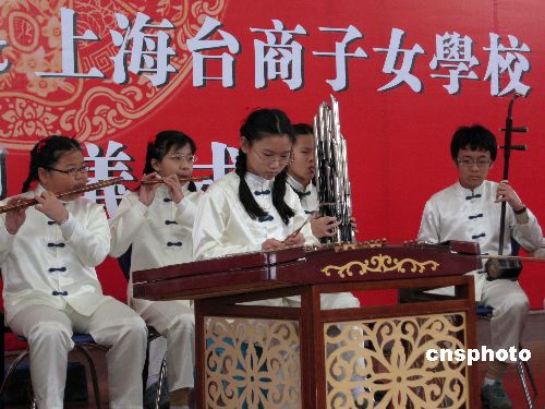 圖為上海臺商子女學校的學生在表演民族器樂。