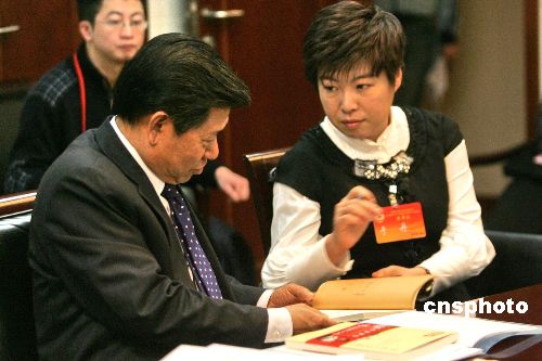 1月21日,北京市新一屆政協(xié)委員于丹與北京市政協(xié)主席陽安江在文藝界別小組討論會上討論問題。于丹是北京師范大學藝術(shù)與傳媒學院副教授,因2006年“十一”黃金假日在央視“百家講壇”連續(xù)七天播出專題講座“于丹《論語》心得”而被人們所熟知。中新社發(fā) 杜燕 攝