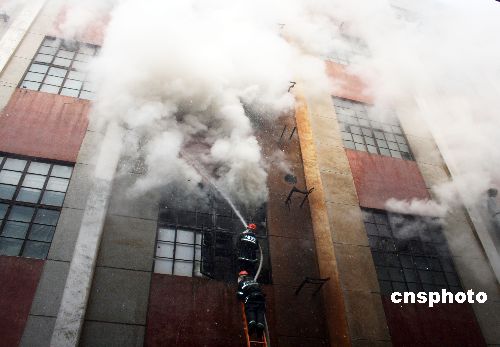 1月22日下午1點(diǎn)鐘左右,位于丹東市錦山大街和公安后街交界處的一個(gè)家具廠庫(kù)房發(fā)生大火,大火迅速蔓延到整個(gè)樓層,濃煙彌漫了整個(gè)廠區(qū)和相隔僅幾十米的居民區(qū),而且當(dāng)時(shí)三樓以上還有部分工人在樓內(nèi)上班。險(xiǎn)情發(fā)生后,丹東消防部門從各消防中隊(duì)迅速調(diào)派20多輛消防車趕到現(xiàn)場(chǎng)進(jìn)行滅火和人員救援。下午三點(diǎn)多鐘,大火被控制住,樓內(nèi)的工人也安全撤出。據(jù)了解,由于三樓的工人對(duì)供暖設(shè)施進(jìn)行拆除,焊接時(shí)引燃了二樓庫(kù)房?jī)?nèi)的家具導(dǎo)致了這場(chǎng)大火。中新社發(fā) 陳浩浩 攝