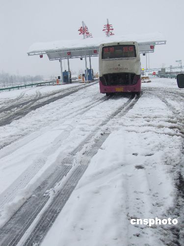 1月20日,安徽六安境內(nèi)合六葉高速公路關(guān)閉,一輛客車滯留在收費(fèi)站口。該市連日普降中到大雪,南部山區(qū)局部暴雪。降雪已造成該市各縣區(qū)普遍受災(zāi),山區(qū)縣災(zāi)情比較嚴(yán)重。目前尚未有人員傷亡報(bào)告,全市各縣區(qū)正組織干部群眾全力抗災(zāi)救災(zāi)。中新社發(fā) 曉遠(yuǎn) 攝