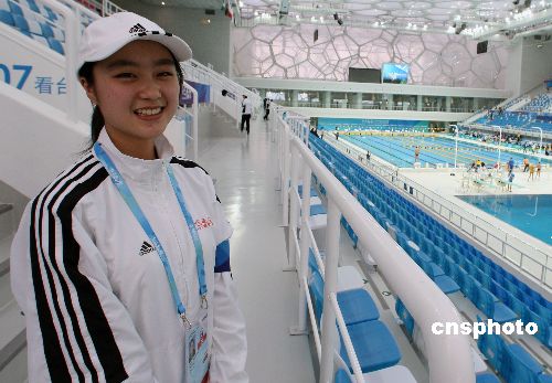 1月29日北京天寒地凍,剛剛完工的北京奧運(yùn)會(huì)游泳場(chǎng)館——國(guó)家游泳館(水立方)內(nèi)溫暖如春,主要由清華大學(xué)學(xué)生組成的數(shù)千名志愿者在靚麗柔美的游泳館“上崗”,迎接1月31日開始的中國(guó)游泳公開賽。中新社發(fā) 任晨鳴 攝