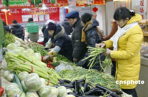 圖為池州市民在排隊購買新調(diào)運來的蔬菜。1月30日,安徽池州東方購物中心冒雪從海南、合肥等地緊急調(diào)運3萬公斤蔬菜投放池城市場,保障池州市場蔬菜供應(yīng)、穩(wěn)定蔬菜價格起到積極作用。中新社發(fā) 程 昭 攝