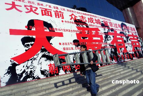 圖:北京首塊抗擊雪災(zāi)的公益廣告牌現(xiàn)身街頭