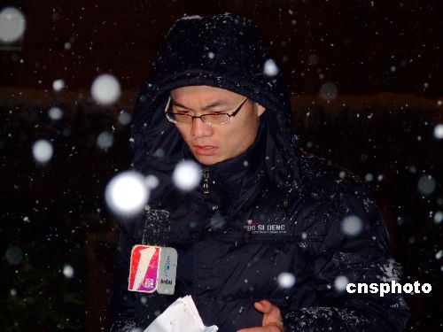 圖:記者在抗雪災(zāi)第一線采訪