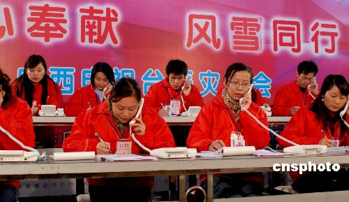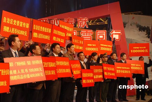 一方有難,八方支援。為幫助災區(qū)人民渡過難關,廣西電視臺充分發(fā)揮電視媒體的強大傳播力和號召力,緊急行動起來,與廣西地區(qū)紅十字會聯合舉辦《愛心奉獻 風雨同行》大型賑災晚會,倡議社會各界及愛心人士發(fā)揚中華民族傳統美德,伸出援助之手,在新春佳節(jié)前,給身處冰雪嚴寒中的父老鄉(xiāng)親送上關愛,帶去溫暖。中新社發(fā) 彭寰 攝