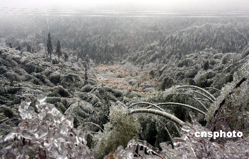自1月16日以來,受冷空氣南下和低空切變南壓影響,福建龍巖長(zhǎng)汀縣持續(xù)低溫陰冷,山區(qū)大范圍出現(xiàn)凍雨和雨夾雪天氣,截至2月2日上午嚴(yán)重冰災(zāi)已造成長(zhǎng)汀縣直接經(jīng)濟(jì)損失四點(diǎn)二五億元。目前,該縣仍有六個(gè)鄉(xiāng)鎮(zhèn)、五十七個(gè)村、二百個(gè)自然村尚未恢復(fù)正常供電。中新社發(fā) 黃啟元 攝