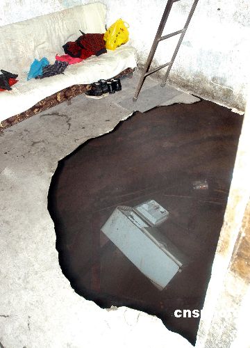 2月2日夜,湖北黃石西塞山區(qū)桃園村兩戶民宅家中突發(fā)地陷。截至目前,附近14戶人家共42人已獲轉(zhuǎn)移,出事點已拉上警戒線。據(jù)地質(zhì)部門證實,這是一起地陷塌方,屬典型地質(zhì)災(zāi)害,陷阱下面可能通到一條地下河。中新社發(fā) 邱孝威 攝