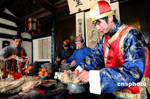 2月8日,紹興魯迅故里舉行“祝!奔漓牖顒印.斎帐寝r(nóng)歷正月初二,浙江紹興魯迅故里在周家老臺門模仿魯迅小說《祝!返膱鼍,從正月初一至初五每天進行紹興傳統(tǒng)年俗“祝!眻鼍氨硌荨=B興的年俗“祝!币螋斞感≌f而名揚天下,浙江省將紹興魯迅故里“祝!倍槲┮坏拇汗(jié)保護示范地。中新社發(fā) 袁云 攝