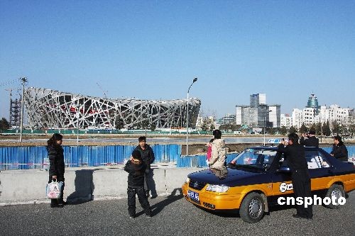 2月16日,位于國家體育場--鳥巢南側(cè)的北辰橋上大批市民在拍照留念,形成一道獨(dú)特的風(fēng)景線。因高架橋上視野開闊,角度頗佳,所以吸引了眾多拍照者在此駐足留影。圖為一出租車司機(jī)也停車在此拍照欣賞一番這獨(dú)特的風(fēng)景。中新社發(fā) 鄭雄增 攝