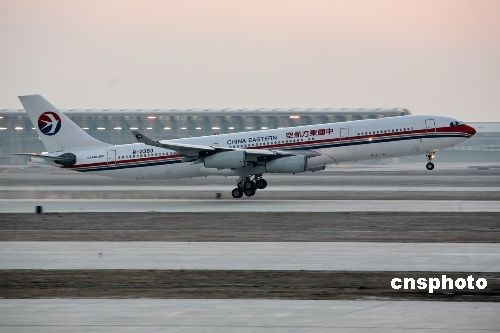 二月十九日清晨,中國(guó)東方航空公司的一架空客A三四○-三○○大型客機(jī)在上海浦東國(guó)際機(jī)場(chǎng)第三跑道試飛成功,這標(biāo)志著歷時(shí)近兩年建設(shè)的浦東機(jī)場(chǎng)第三跑道工程,已全面具備了飛行營(yíng)運(yùn)條件。據(jù)悉,浦東國(guó)際機(jī)場(chǎng)第三跑道將于今年三月正式啟用,屆時(shí)將可起降目前全球最大型的A三八○客機(jī)。中新社發(fā) ;萦 攝