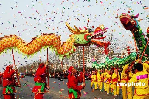 2月20日,山東淄博周村區(qū)舉行元宵節(jié)民間藝術(shù)文藝匯演,震天的鑼鼓、歡快的秧歌、威武的獅子、翻飛的龍燈以及劃旱船、抬芯子、跑竹馬等民間藝術(shù)形式一一上演,讓人們熱熱鬧鬧過元宵。中新社發(fā) 董乃德 攝