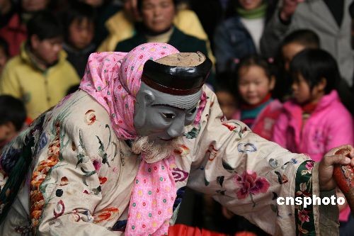 圖:江西宜春村民跳起儺舞鬧元宵