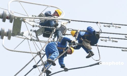 2月23日,全國第一條因暴雪災(zāi)害,導(dǎo)致輸電線路鐵塔倒塌的三峽電力送往華東的大動脈±500千伏湖北宜昌至上海華新直流輸電線路,安徽境內(nèi)搶修工作全部接束,中斷37天的500千伏宜華線恢復(fù)貫通。1月17日,該輸電線路﹟1146-﹟1153段4座位于大別山腹地安徽六安境內(nèi)崇山峻嶺中的巨型鐵塔被冰雪壓塌,線路嚴(yán)重受損。災(zāi)害發(fā)生后,安徽省電力公司500多名搶險(xiǎn)人員和當(dāng)?shù)財(cái)?shù)百干部群眾克服天寒地凍、山路陡峭等困難,奮力搶修,經(jīng)過37天艱苦奮戰(zhàn),運(yùn)送搶險(xiǎn)物資150多噸,終于將4座倒塌鐵塔重新修建完成,宜華線路全線貫通。中新社發(fā) 陳超平 攝