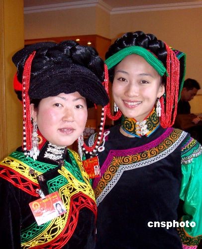 中國的全國人大代表日趨年輕化,來自四川的全國人大代表毛金芳、張蓓蓓(右)首次成為“80后”代表,即所謂出生于1980年以后的“獨(dú)生子女”新生代青年。毛金芳1980年12月出生,是雅安市石棉縣安順鄉(xiāng)鹿子坪村婦女主任。張蓓蓓1982年4月出生,為涼山州歌舞團(tuán)三級舞蹈演員。中新社發(fā) 黃翔 攝