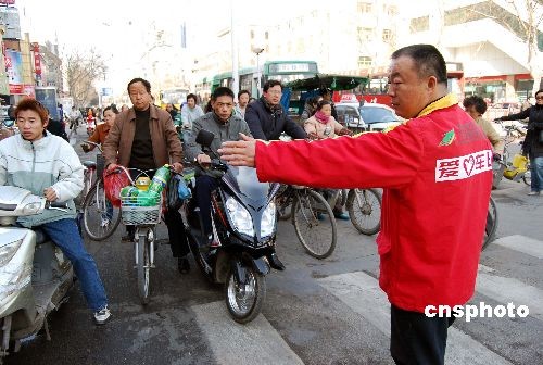 3月4日,一名交巡警對“愛心車隊”的哥進行“崗前”培訓(xùn)。當日,江蘇省鎮(zhèn)江市“愛心車隊”的哥的姐,來到該市京口區(qū)道口“客串”交巡警。他們通過崗位執(zhí)勤、發(fā)放宣傳資料等形式,用實實在在的角色轉(zhuǎn)換與體驗,進一步增強維護道路交通安全和良好交通秩序的自覺性。中新社發(fā) 汪永祥 攝