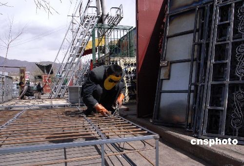 三月二十四日,拉薩市內(nèi)集中經(jīng)營(yíng)防盜門窗的市場(chǎng)內(nèi),工人正趕制產(chǎn)品。近來(lái),拉薩防盜門窗業(yè)務(wù)激增。中新社發(fā) 廖攀 攝