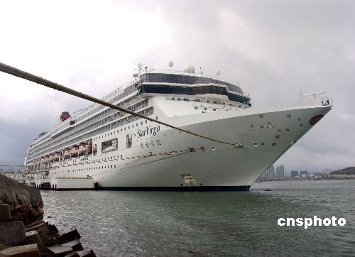 4月1日,馬來西亞麗星郵輪公司旗下大型豪華郵輪“處女星”號(hào)(superstar virgo)正式接替“天秤星”號(hào)首航三亞,這是一艘目前航行亞洲市場(chǎng)最大、最豪華的郵輪。據(jù)了解,該輪接替“天秤星”號(hào)執(zhí)行4月至10月“香港—三亞-越南-香港”定期航線,排水量7.6萬噸,滿載客2800人,船員1400人。據(jù)三亞邊防檢查站介紹,“處女星”號(hào)2008年將計(jì)劃停靠三亞25個(gè)航次,平均每7天一個(gè)航班。中新社發(fā) 段中偉 攝
