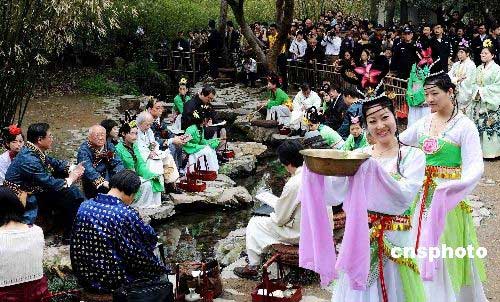 4月8日上午,中日韓書法家在書圣王羲之的浙江紹興蘭亭交流書藝、進行曲水流觴飲酒作詩仿古雅趣活動。當日,第24屆中國蘭亭書法節(jié)在浙江紹興舉行。來自中國、日本、韓國的42位書法家及數(shù)百名書法愛好者參加書法盛宴。中新社發(fā) 袁云 攝