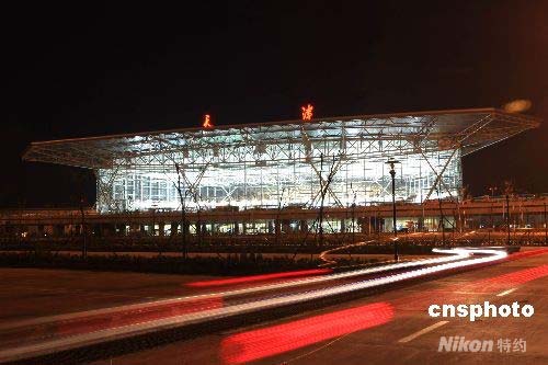 4月28日零時(shí),2008年北京奧運(yùn)會(huì)主降機(jī)場之一和首都機(jī)場第一備降機(jī)場——天津?yàn)I海國際機(jī)場新航站樓正式啟用。據(jù)機(jī)場負(fù)責(zé)人介紹,北京奧運(yùn)會(huì)期間,從該機(jī)場進(jìn)出港的奧運(yùn)官員、運(yùn)動(dòng)員及中外旅客預(yù)計(jì)超過三十萬人次。中新社發(fā) 段毅剛 攝