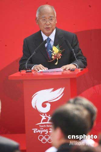 圖:奧運(yùn)圣火在澳門(mén)傳遞 何振梁致詞
