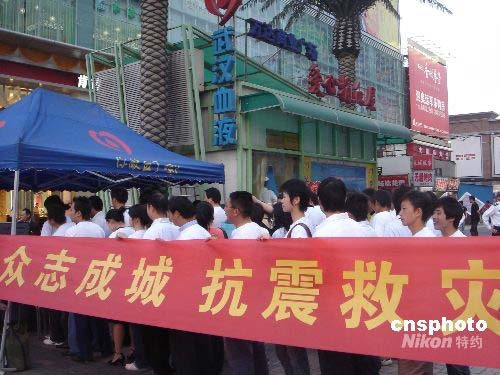 5月13日,驚聞四川地震災區(qū)血液告急,同飲一江水的湖北武漢民眾主動走向設在三鎮(zhèn)街頭的采血點,挽起手臂捐獻血液,以備災區(qū)不時之需。當天,武漢市共有七百零八人參與獻血,共計采集九百四十三個單位、十八點八六萬毫升血液,兩項數(shù)據(jù)分別較平日增加了四成比例。中新社發(fā) 徐金波 攝